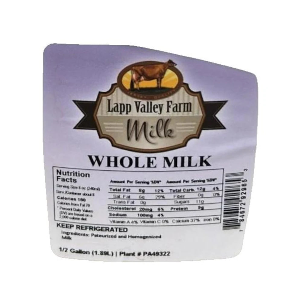 Lapp Valley Farm Whole Milk, 1/2 Gallon (1.89L)